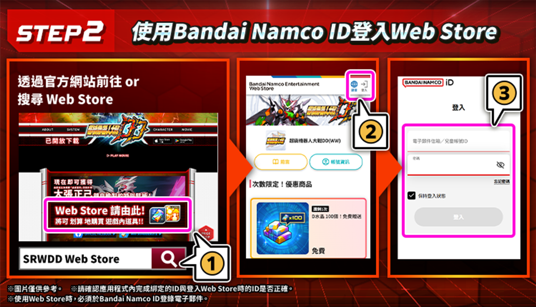與購買商品時相同,使用Bandai Namco ID登入後輸入代碼。