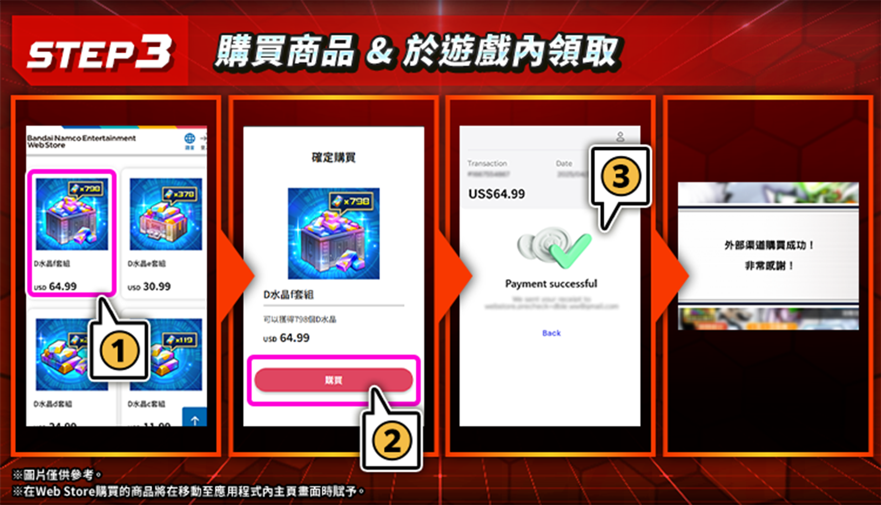 購買‧兌換Web Store的商品後,開啟應用程式內的主頁畫面即可自動領取商品